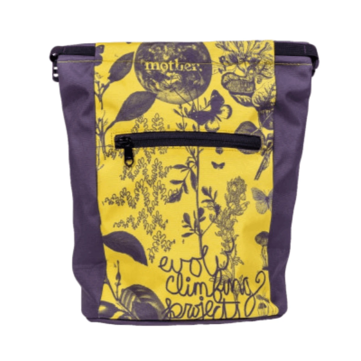 Heavy duty, abrasion-resistant nylon climbing chalk bucket with brush holder and two pockets.