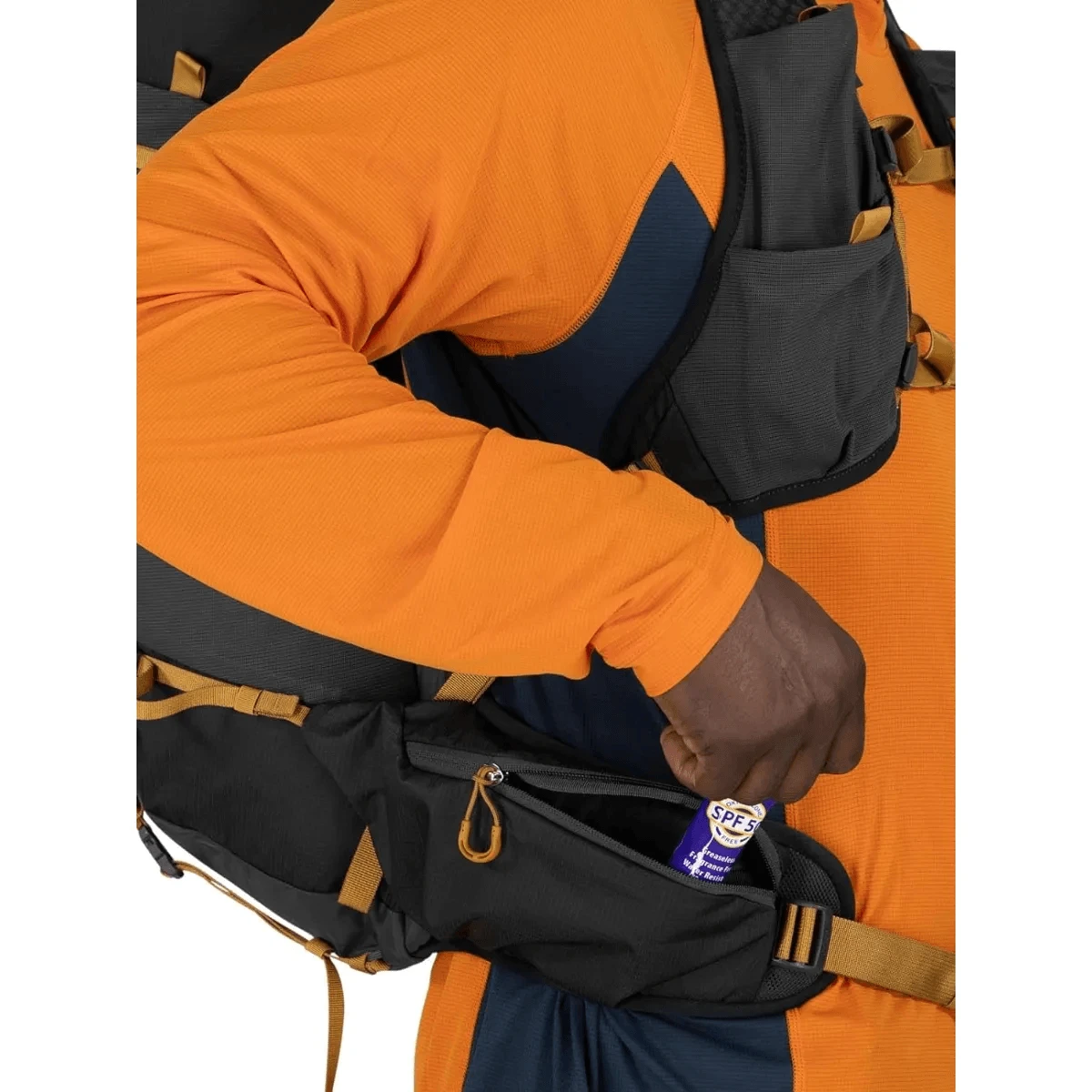 - 500ml soft-flask compatible pockets with stabilization loops